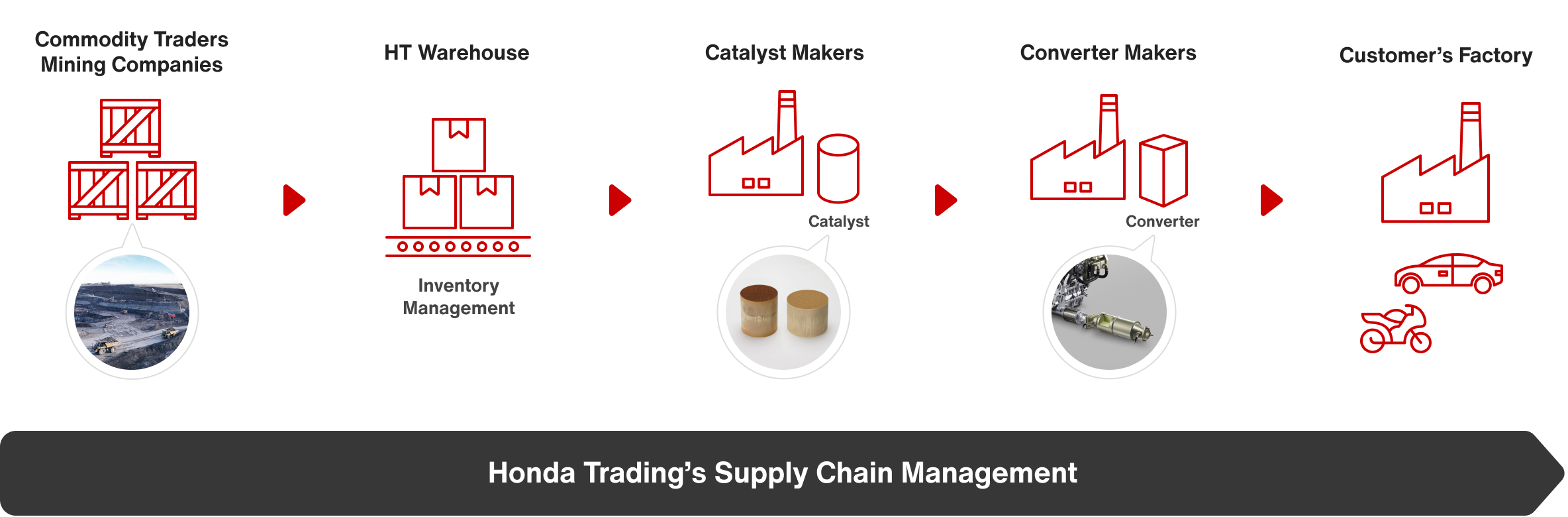 Beyond supplying PGMs, we offer solutions to various challenges our customers face, including procurement, inventory management, and cash flow. Leveraging our extensive procurement network, we also focus on other products such as rare metals and rare earth elements.