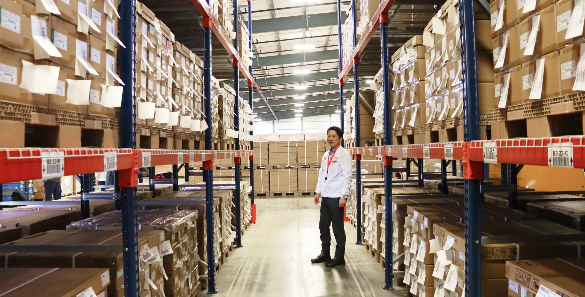 When containers carrying batteries pass through the Pacific Ocean in midsummer, they are exposed to high temperatures for extended periods. Therefore, we have taken measures such as transporting in temperature-controlled containers and equipping storage warehouses with air conditioning to enable 24-hour temperature management.